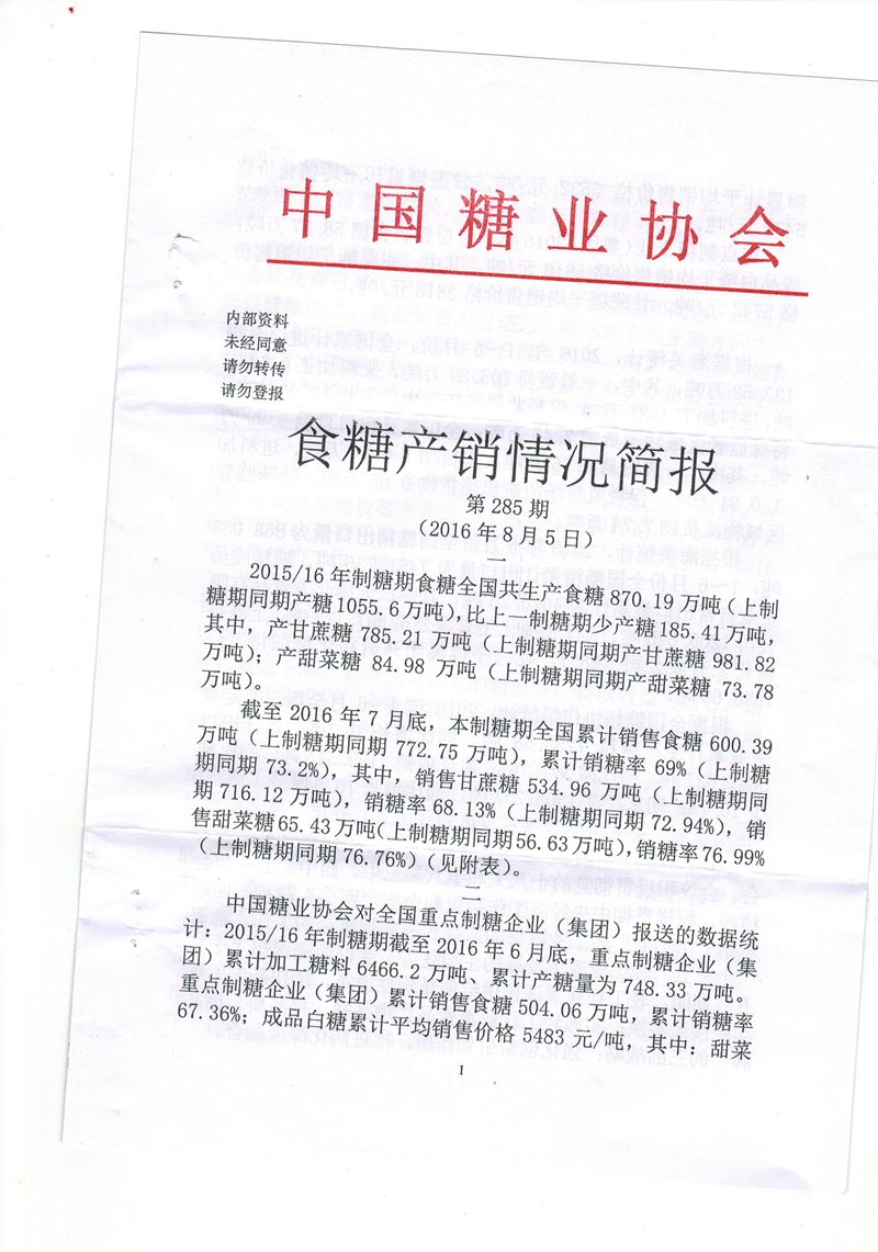 中國(guó)糖業(yè)協會(huì)285期
