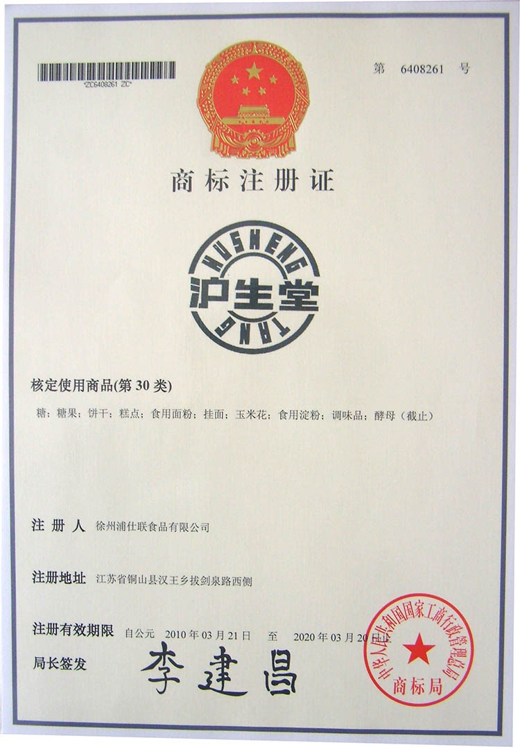 近(jìn)日(rì),公司申請(qǐng)的(de)“滬生(shēng)堂”和(hé)“糖研工(gōng)坊”二個↑(gè)商标獲得(de)中華人(rén)民(mín)共和(hé)國(guó)工(gōng)商行(xíng)政管理(lǐ)總局商标局的(de)批準,正式成為(←wèi)注冊商标。有(yǒu)效期:自(zì)2010年(nián)3月(yuè)21日(rì)至2×020年(nián)3月(yuè)20日(rì)止,有(yǒu)效期10年(nián)。