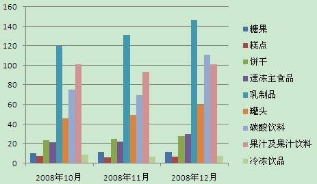 2008年(nián)10月(yuè)-12月(yuè)含糖食品産量增長(cháng)圖