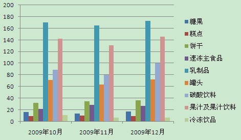 2009年(nián)10月(yuè)-12月(yuè)含糖食品産量增長(cháng)圖